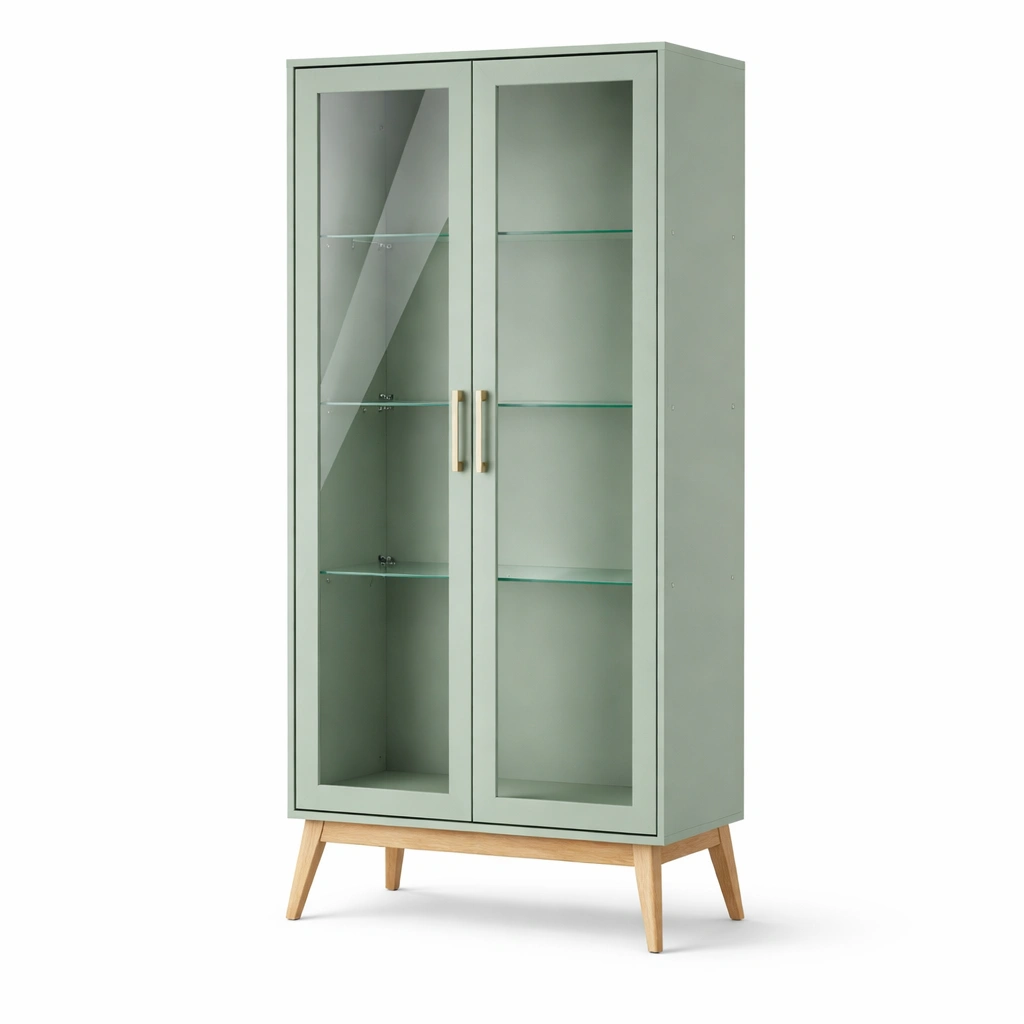 Vitrine Grün Holz Gehärtetes Glas Metallgriffe